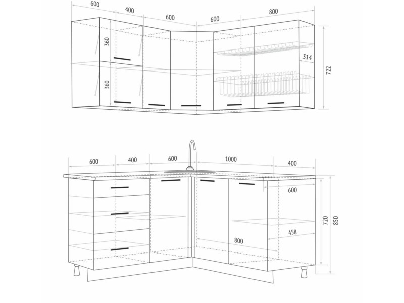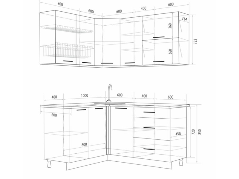 Комплектация Угловой кухни (размер 1600*1400) угол универсальный: