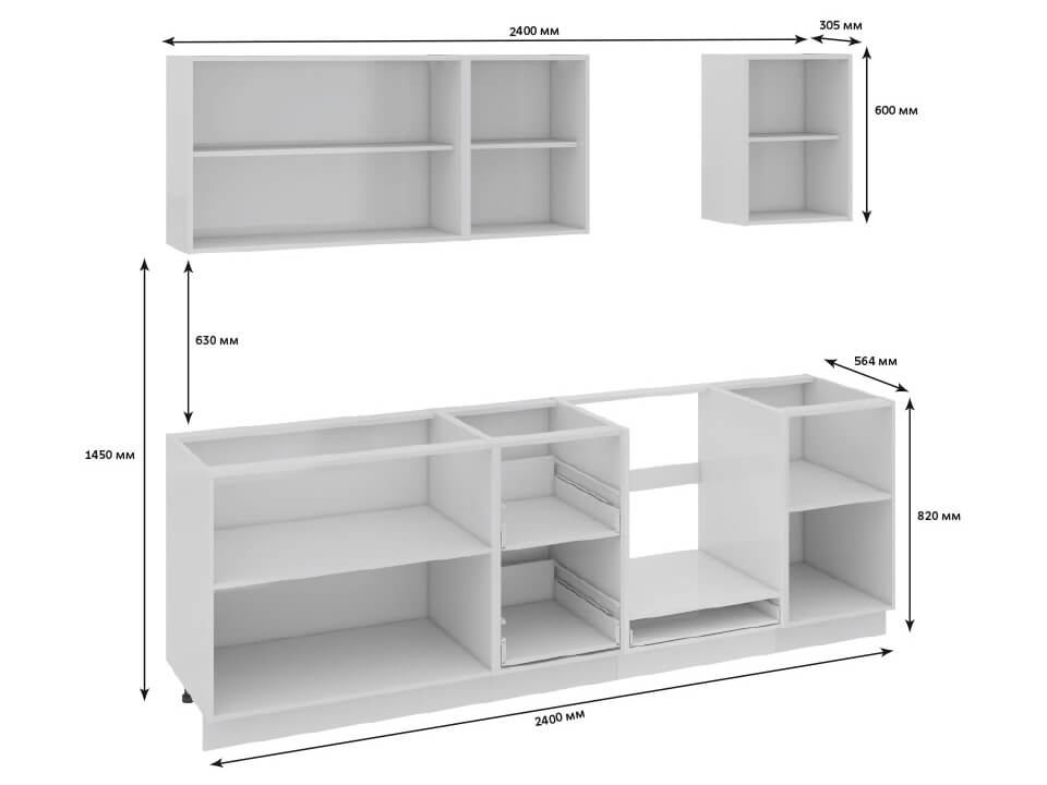 Кухонный гарнитур Фэнтези Белый универс, Лайнс 2,4м